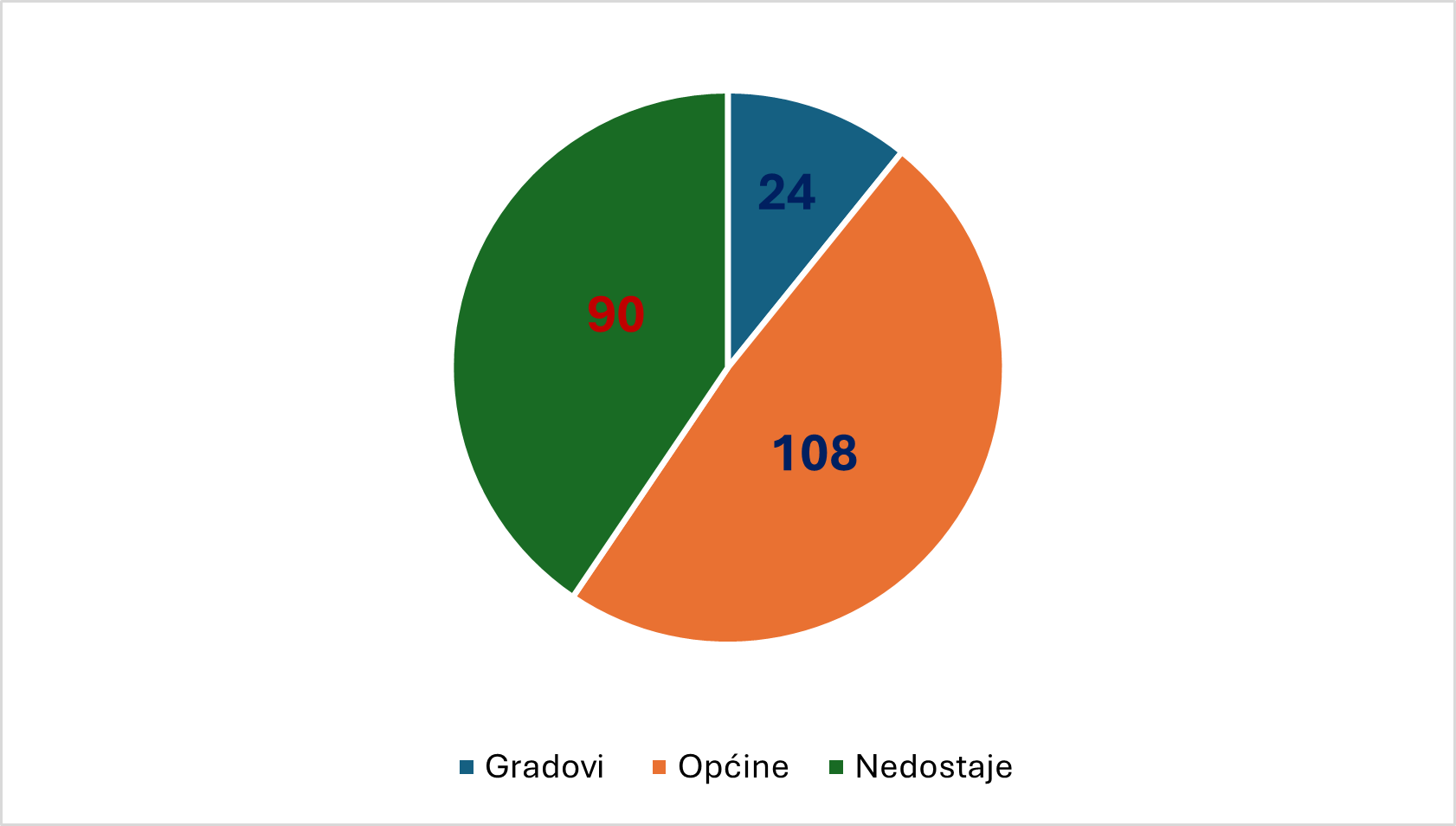 40 posto jedinica lokalne samouprave ili 222 općine i grada dobrovoljno funkcionalno spojiti u zajedničkom pružanju jedne ili više javnih usluga stanovništvu. Za preostale 333 općine i grada koje nisu dobrovoljno odlučile zajednički obavljati neke od lokalnih javnih poslova nema utvrđenih ciljeva, kao niti kriterija po kojima bi se postigla funkcionalna i održiva lokalna samouprava.