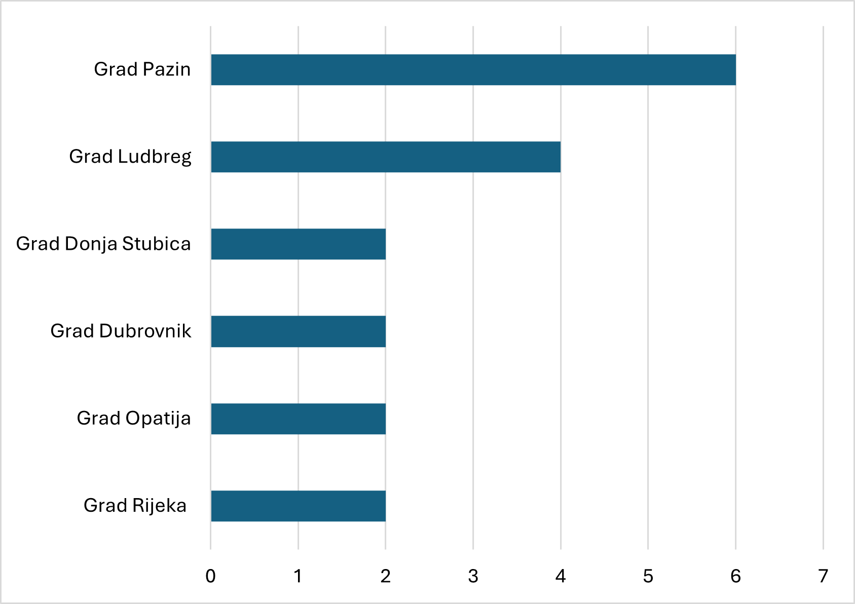 Slike 6 i 7 prikazuju primjere dobrovoljno funkcionalno spojenih gradova i općina za obavljanje više poslova. Od gradova se ističe grad Pazin koji se dobrovoljno spojio s okolnim općinama za šest različitih poslova, kao i općine Lupoglav, Gračišće i Cerovlje koje su se dobrovoljno funkcionalno spojile s drugim jedinicama lokalne samouprave za zajedničko obavljanje također šest različitih poslova iz samoupravnog djelokruga.