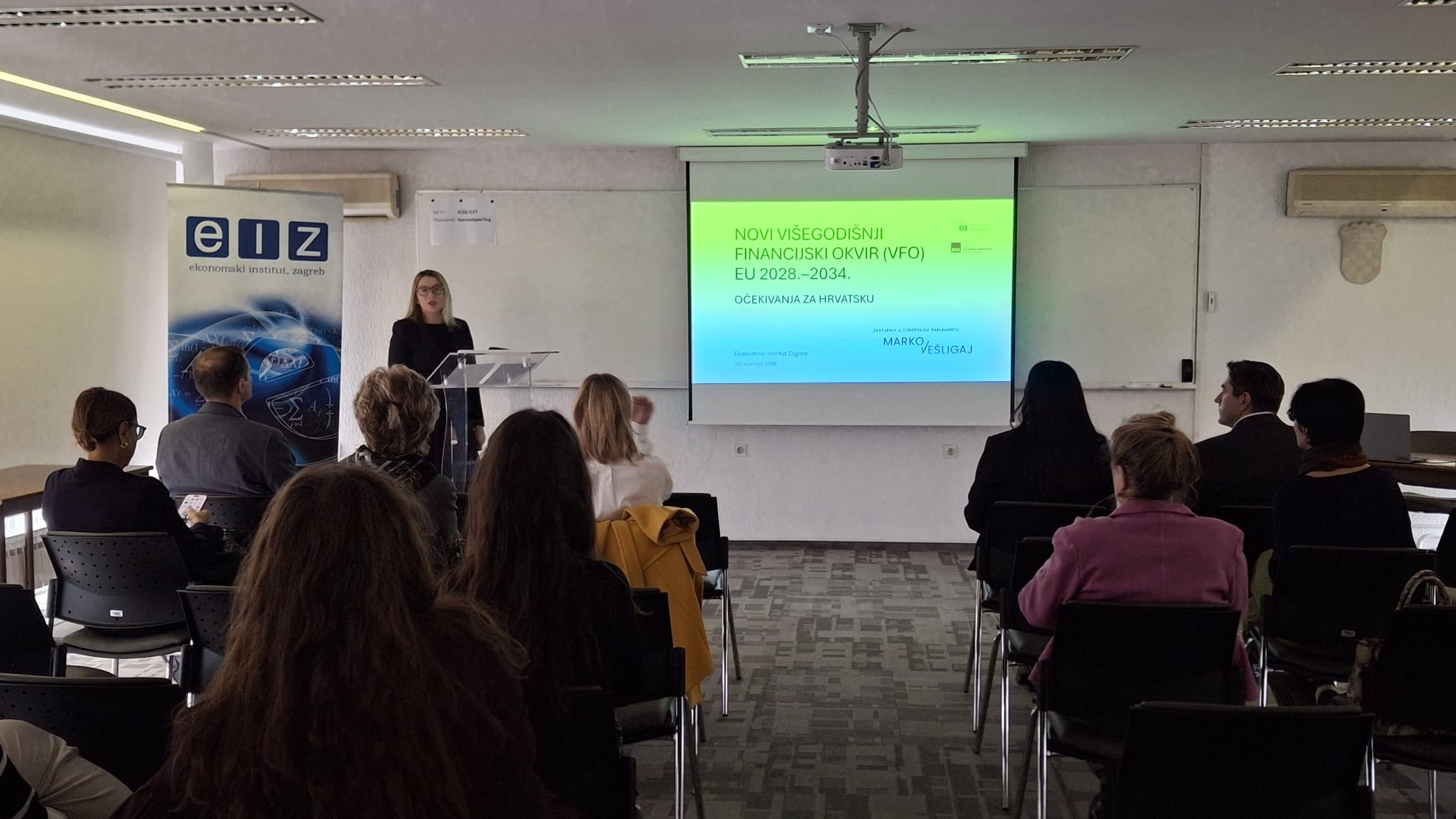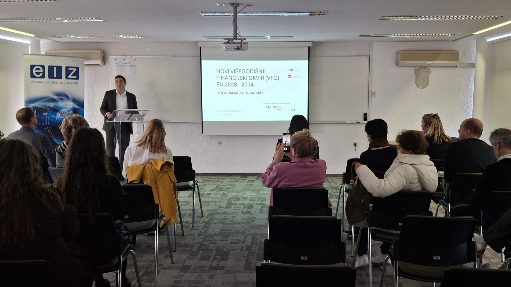 Marko Vešligaj, zastupnik u Europskom parlamentu iz redova Kluba S&D-a, u Ekonomskom institutu, Zagreb održao je predavanje pod nazivom Novi višegodišnji financijski okvir (VFO) EU-a za razdoblje 2028. - 2034. i očekivanja za Hrvatsku.