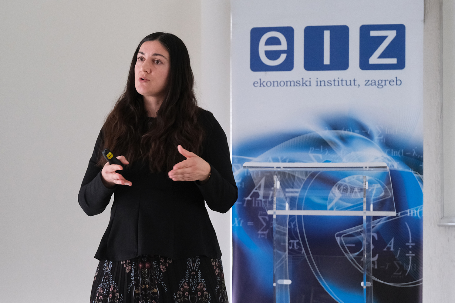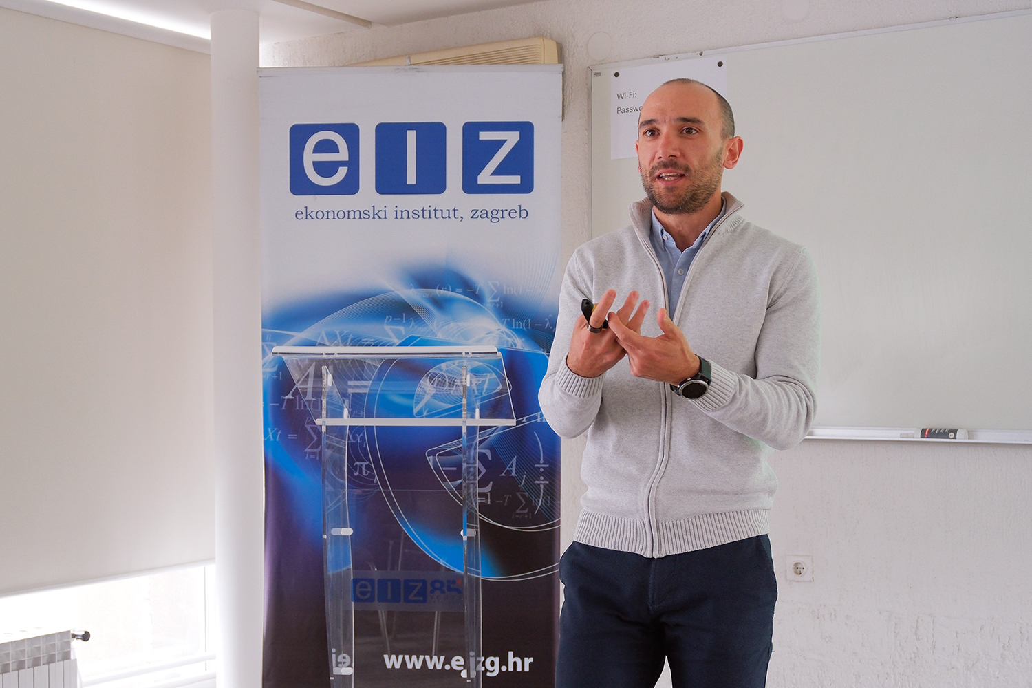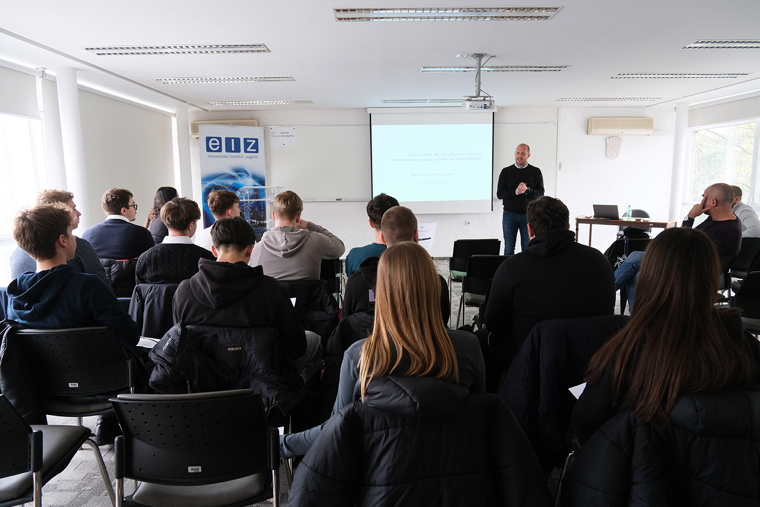 Učenike je uvodno pozdravio viši znanstveni suradnik i pomoćnik ravnateljice za promociju istraživanja dr. sc. Ivan Žilić, a naš viši znanstveni suradnik dr. sc. Bruno Škrinjarić održao je izlaganje u kojem je učenike upoznao s radom na Ekonomskom institutu, Zagreb te im približio rad u znanosti.