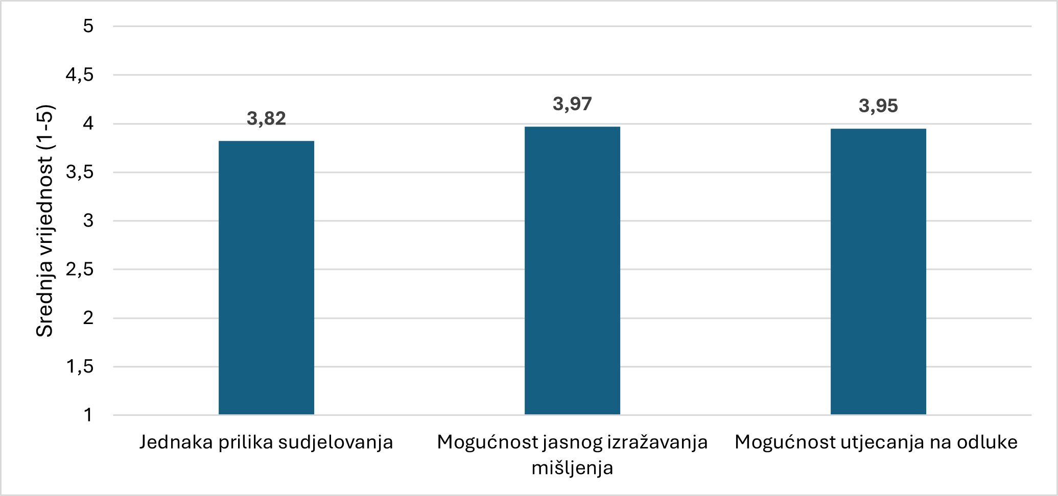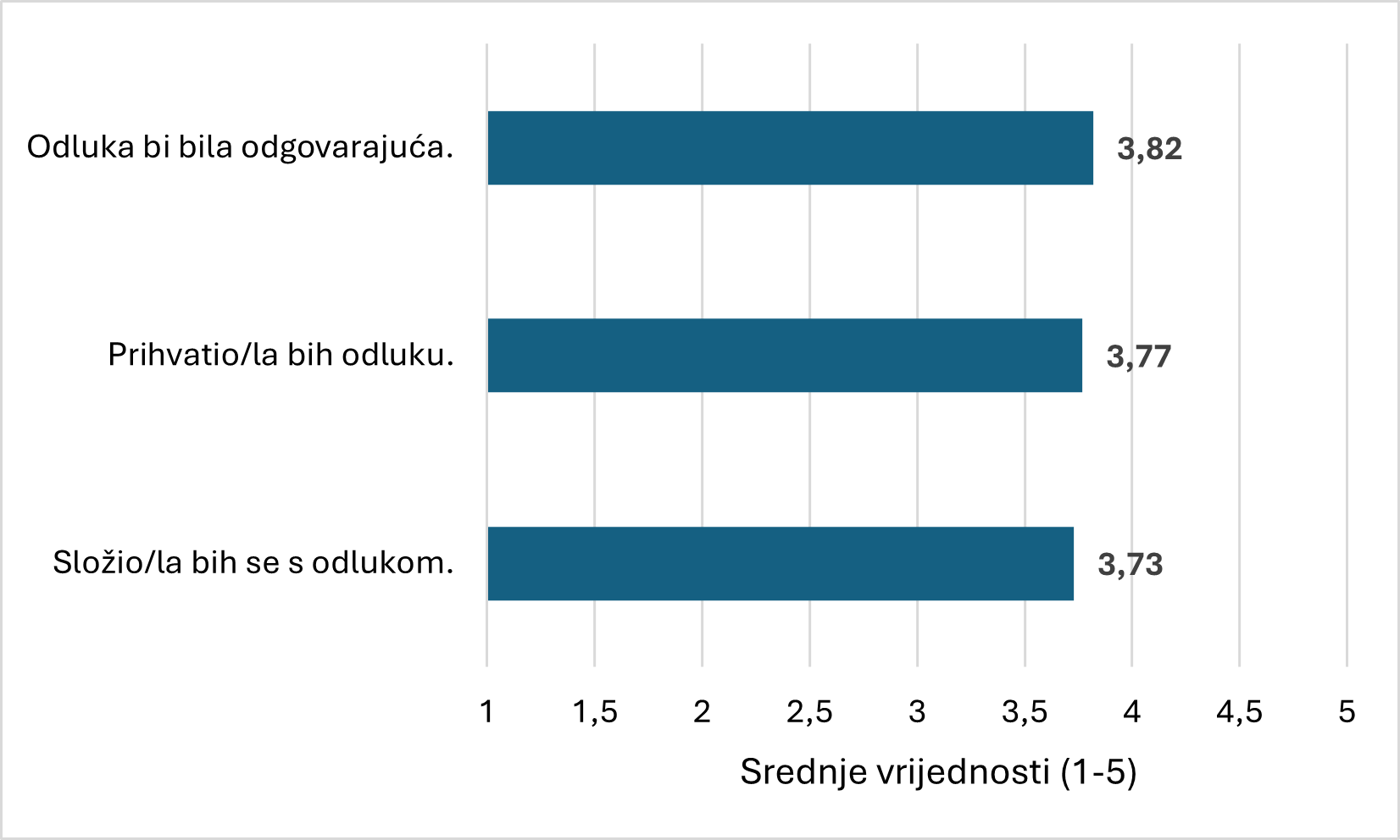 Slika 2. Percepcija kvalitete procesa odlučivanja (srednje vrijednosti)